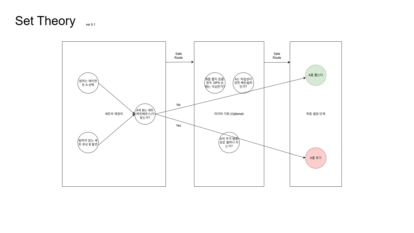 아니다. 오히려, 그 반대로 세트 이론을 이번 기회에 더 강화하고, 파일럿의 뽑기 의사결정 알고리즘 기반을 확실하게 다져놓고, 우리의 지갑을 최소한의 시간낭비로 지키는 것으로 목표를 새로 설정한다.